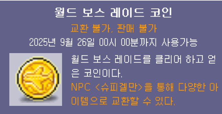 - 월드 보스 레이드 코인 (9월 26일 00시까지 사용 가능)