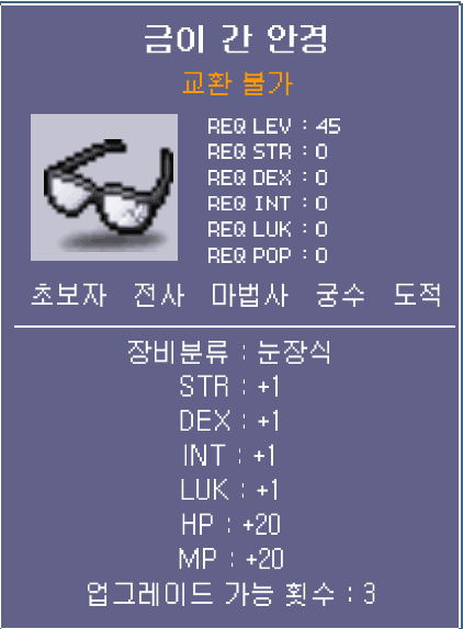 - 금이 간 안경 (교환 불가)